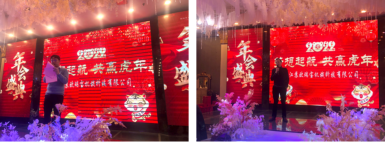 寒冷冬日,暖陽高照,江蘇歐瑞寶機(jī)械科技有限公司新春年會總結(jié)表彰大會隆重舉行。整個活動包括總經(jīng)理致辭、表彰大會(年度優(yōu)秀員工、標(biāo)兵共計13人次;企業(yè)貢獻(xiàn)獎(工齡10年、15年、20年)共計19人次;優(yōu)秀團(tuán)隊共計2個)、年會活動(唱歌、跳舞、互動游戲;抽獎(共計114個獎項))三大環(huán)節(jié)。活動進(jìn)行中,掌聲數(shù)次想起,笑聲此起彼伏,全場始終洋溢著振奮、進(jìn)取、熱烈、愉快的氣氛,精彩紛呈,亮點鮮明。